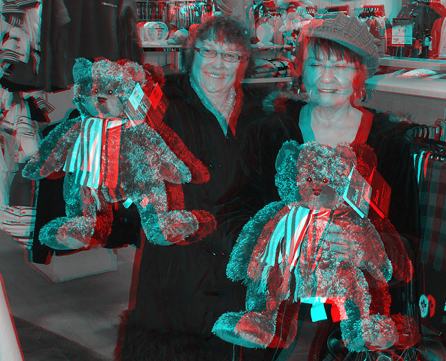 Sheil and Lorraine in the Banff Hudson's Bay store. Lorraine sez that every year The Bay brings out a new teddy bear it sells for charity. This year's edition is on display in this shot.