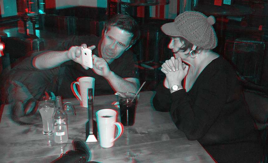 Gerry took a shot of the contraption in the bong shop on his iPhone and is seen here explaining to Lorraine how it works.