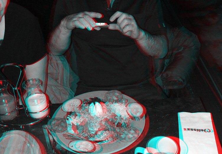 This is Gerry's dinner. A few moments after this pic was taken a tiny alien came flying out of that egg-shaped pod and attached itself to Gerry's face. Gerry kept playing with his iPhone and the rest of us tucked into our supper. The next time I looked the alien had disappeared, so I'm assuming all is well. |