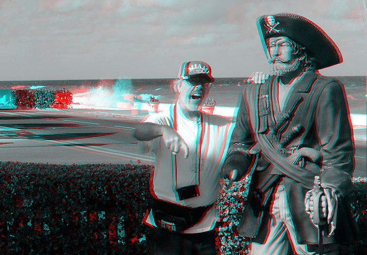 Here's The Mayor trying to suck up to one of the locals on Grand Cayman by pretending he, too, has a hook for a hand. Didn't work, he was the strong silent type, I guess.