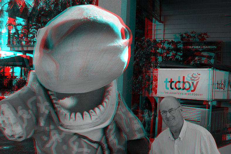 Seems to be a local thing to have all the artificial mascots be amputees. First the salty dog with the hook, now this (I guess) shark with a missing arm. Wait. What? Arm?