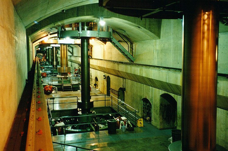 Speaking of the turbines, these are not them. These are drive shafts which connect the turbines (below) to the generators (above). They were really spinnin', man.