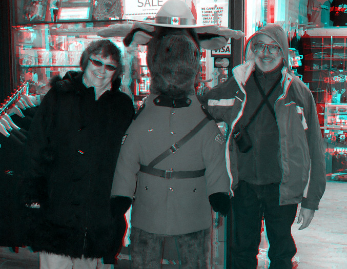 This gray-scale anaglyph doesn't show it up but two of the rugged individuals in this shot are clad in crimson.