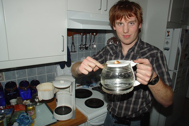 Dan and the Mayor decided to make some coffee. Dan did the water measuring part.