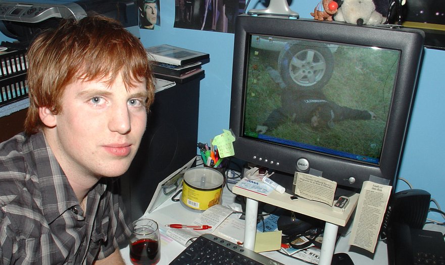 That's Paul's son, Paul's son, Paul's trout on the screen being flattened like a mackerel or a pancake or something by a big tire.