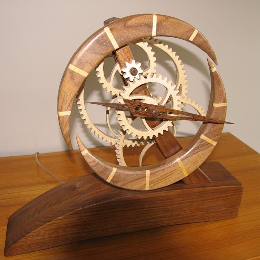 I decided to go with another electric clock this time but make a base that would completely hide the motor. The base, main upright and dial are black walnut.