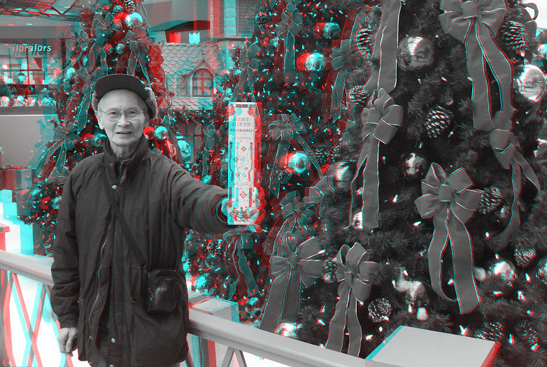 It's December 1st. The Christmas Season has been well under way for a coupla months and we decided to hit the Buffet Yangtze in Deerfoot Mall for a spotta lunch. In recognition of the upcoming New Year, Buffet Yangtze gave us each a nice bamboo roll-up calendar. Here's Dan showing his off in Stupefying 3D! |