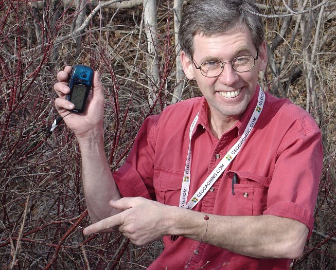 Up the side of the gully we go and, once again employing his geocaching superpowers, Kaptain Kinder finds the hidden tackle box which is the container for cache number two.