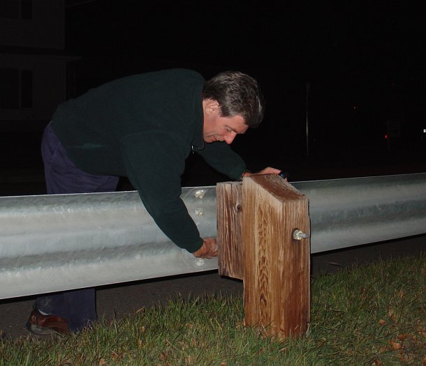 The Kaptain had also downloaded the coordinates for another cache in his old neighborhood, St. Andrews Heights, so we decided to take a crack at it before heading back to The Mayor's Mansion. This cache was a two-stage one. You first have to find one cache and use the instructions or further coordinates it contains to find a second cache. The instructions that came with the coordinates said first cache would be in a magnetic key holder so a thorough search of anything metal in the area seemed like the way to go. |