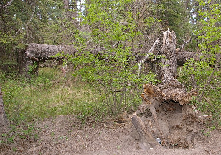 The Mayor's first semi-legitimate find. He was first to spot the cylindrical container "hidden" in the hole left when this tree's root system decided to come up for air.