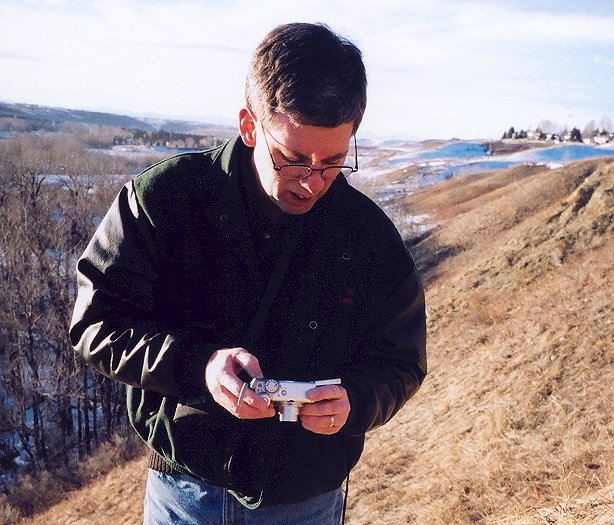 Having found the Eddie the Eagle 2 cache, Kaptain Kinder gets ready to digitally record the event for posterity and for posting to the geocaching.com Web site.