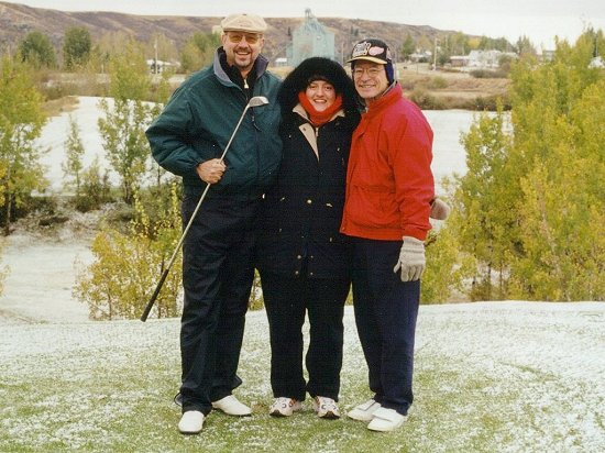 This life-size, hand-painted replica of Norman Rockwell's famous magazine illustration "The Golfers" is sculpted entirely out of macaroni and ear wax (which lends it its astonishingly life-like quality). Because the wax tends to run on warm summer days, the sculpture is kept, for much of the golfing season, in the cold storage room at the Rosebud Funeral Parlour and Cosmetology School where it has given more than one apprentice undertaker the heebee jeebees. Due to the frigid temperatures on the day of the Ice Golf 99 Celebrity Invitational, organizers prevailed upon course administrators to bring the treasured art work out to add a high-brow touch to the event. Sharp-eyed Rosebud residents have noted that "The Golfers" bear a striking resemblance to local musical celebrities the Rosebud Siamese Triplets. It is suspected that a former employee of the Rosebud Funeral Parlour and Cosmetology School (who left under shadowy circumstances) took a few liberties with his new Junior Undertakers Makeup Kit and altered the faces. Any cold storage room witnesses to the act would have been, of course, unavailable for comment. |