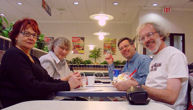 That's Lorraine in another chair. This one is at the Dairy Queen where we went for a spot of post-cinema dessert. A fine time was had by all, except the guy in the movie who got eaten by a grizzly bear. But we figure he had it coming, so no worries there. |