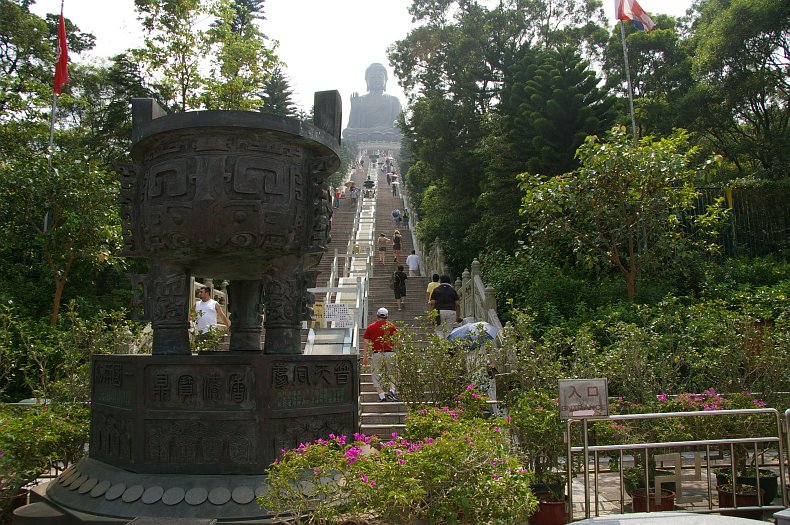 The bottom of the steps up to the buddha. Keep an eye on Randy in the red shirt.