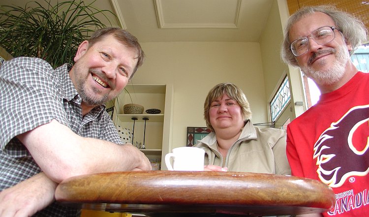 Another small turnout, this time at the Heartland Cafe. Then AnneMarie DeGroot, one of our old cohorts from the Tech stopped in and our numbers increased to the tune of 50% (I think, math was never my long suit).
