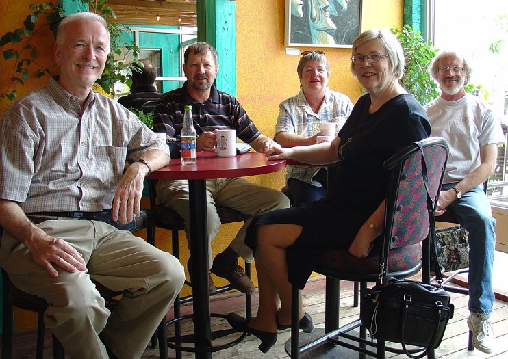 Summertime and the livin' is easy at the Badass Canada Coffee Corporation on 17th Avenue. Barb's office is in the neighborhood and she was able to play hooky for an hour to swing by and join us. It was also good to see Sylvia again. They both had wild and wooly tales of Barb's daughter's weddings (one daughter, two weddings -- it's complicated) which, George sez will be covered in an upcoming edition of Avenue Magazine -- keep an eye peeled for it. |