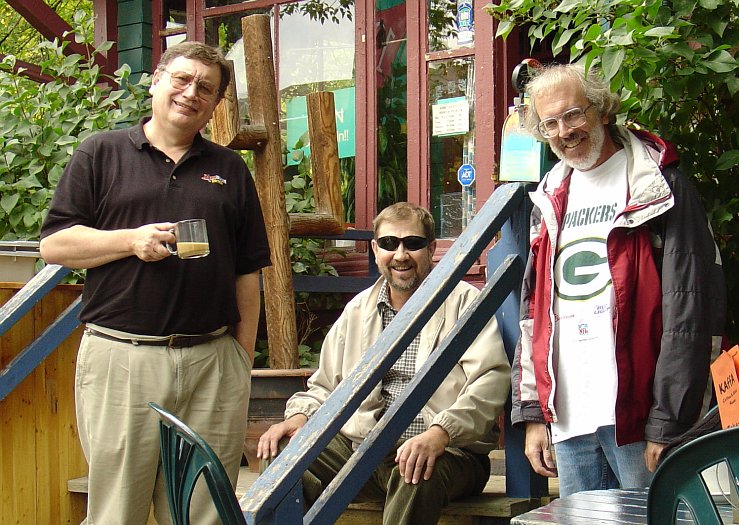 A lovely fall day for an outside Klatsch at Kaffa in Marda Loop. This shot was set up to show the timber cactus and brightly painted parrot mailbox Kaffa has on its front steps. Then, at the crucial moment, The Mayor went and stuck his fat head in front of the parrot. What a fathead! Look at him, there, grinning like an idiot. Sheesh. |