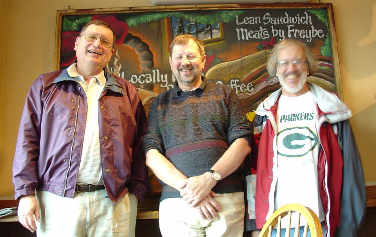 This is us at the very busy Lazy Loaf and Kettle on a rather chilly and sort of rainy fall day. This is moments after The Mayor instructed everyone to keep still cuz it's gonna be a long exposure (the ol' window light thing again). As you can see, everyone did a good job of keeping still except Hizzoner who seems to be nipping in from a brief vacation outside of the spacetime continuum. Or maybe he's just an idiot. You decide. |