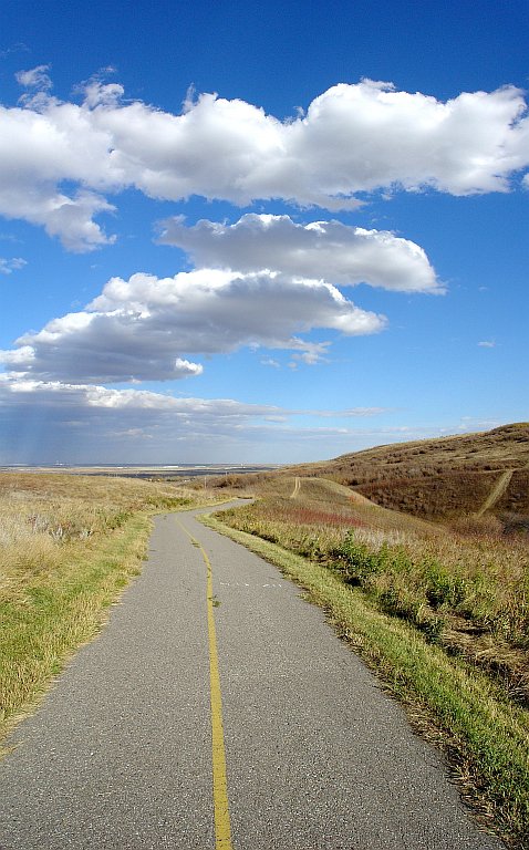 Hizzoner took his very first panoramic photo at last year's Nose Hill Klatsch. It was a horizontal, which is the most common kind of pano. This year he took his very first vertical pano. This is it; three separate shots stitched together vertically.