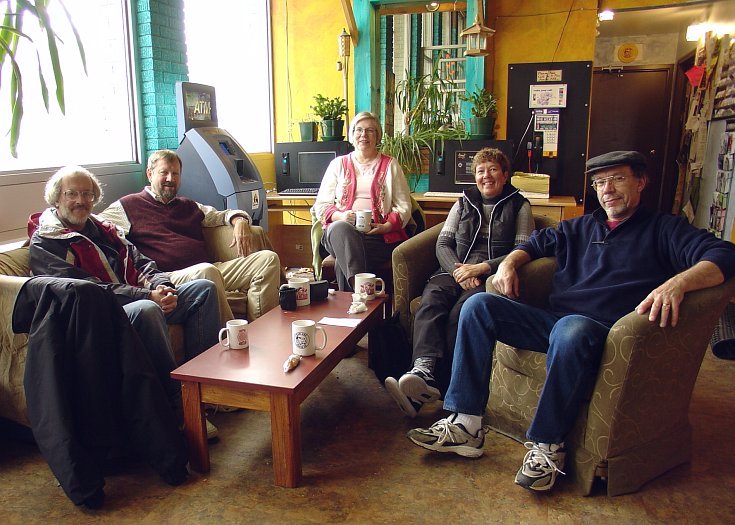 Here we are at The Bad Ass Canada Coffee Company on 17th Avenue on a bit of a bad ass day -- weather wise. We caught Barb on the final leg of a cafe hopping spree and the Von Steins were finishing up a hard day's shopping for winter togs for Cricket. See next pic. |