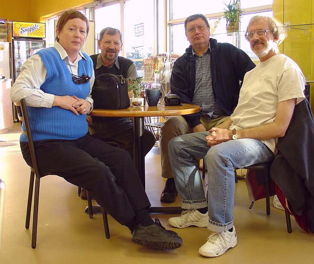 We thought we'd drop in at Socrates's Corner to see what changes had been wrought there. Well, it's still a bookstore, of sorts -- mostly meditation stuff for women -- but you can still get java and snax there. Oh, yeah, and some grouchy old babe told us off and said she was leaving because we were making too much noise. A little more meditation required to smooth out her disposition, sez The Mayor. |