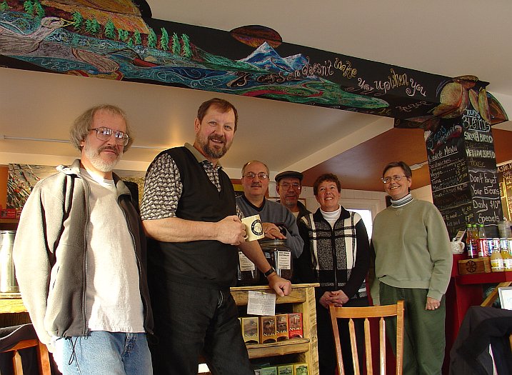 A nice Klatsch at Blends Roasterie on Edmonton Trail. Last time we were here Lawrence showed up with his turkey legs and we unanimously agreed that Bazooka Joe is a genius based on his creation of the "Match the Manager to the Coiler" idea as a United Way fundraiser back in the day. And, speaking of Bazooka Joe, up he turns for today's Klatsch with wild and wooly tales of applying for an oil rig job in Canada's Great White North. 20 guys applied and only 3 made it to the finals; he was one of 'em. Good for you, Joe! |
