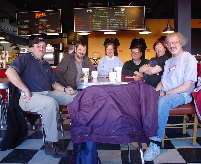 Last time we were at Cadence Coffee in Bowness, a fellow in his underwear came to an upstairs window in the establishment across the street formerly know as the Bowness Hotel, scratched himself in several places and then disappeared back into the shadows to continue living out what is likely a cross between an episode of Fantasy Island and something out of Dante's Inferno. No such glimpses into alternate universes this time but the Cadence did have some new art on the walls... |