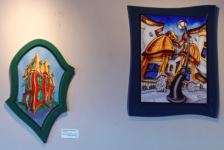Cadence Coffee often features the art works of a fellow (whose name escapes me) who does paintings of local buildings in a very unique and bendy style. The one on the right is a scene from the Kensington district and, if I'm not mistaken, depicts the area just in front of Charlie Chan's restaurant. |