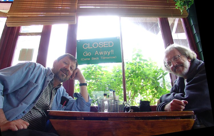 A mini-Klatsch at Kaffa Coffee & Salsa House in Marda Loop. Mary is off tramping around with a hiking group in Kananaskis, The Von Steins are tramping around in Ottawa. Krysak is tramping around the Airdrie Co-op Liquor Store and Nick is probably tramping around some tennis court. Don't know where Bazooka Joe is but I wouldn't put it past him to be tramping around somewhere, too. The two lone attendees this week tramped over to the service counter for a coupla javas then tramped out to the nice little veranda area at Kaffa where they discontinued their tramping (although, in their casual attire, some might say they looked like a coupla tramps) and bemoaned the current political shenanigans in our nation's capital where one blonde-headed politico has been behaving like a bit of a tramp. |