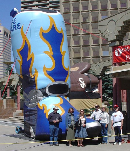 The 2005 edition of the annual Stampede Kaffee Klatsch Mall Krawl finds us at Rope Square where, yet again, nothing is happening. Alison suggested that next year we begin krawling at the east end of the mall so we'll be there if any merriment is transpiring. Good idea! Now all I gotta do is remember it for a year. : ( There are more Mall Krawl pics here. |