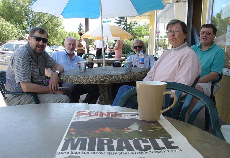 A nice outdoor Klatsch at Central Blends. You always learn something at a Klatsch and this time we came away with the knowledge (courtesy of Mr. T, who makes wooden clocks by hand) that if you have five gears with a total of 3600 teeth, that's all you need to make a clock. I'm gonna pry the back off my grandpappy's old pocket watch and count the little wheels in there. I'll be be hornswoggled if there aren't more than five. |