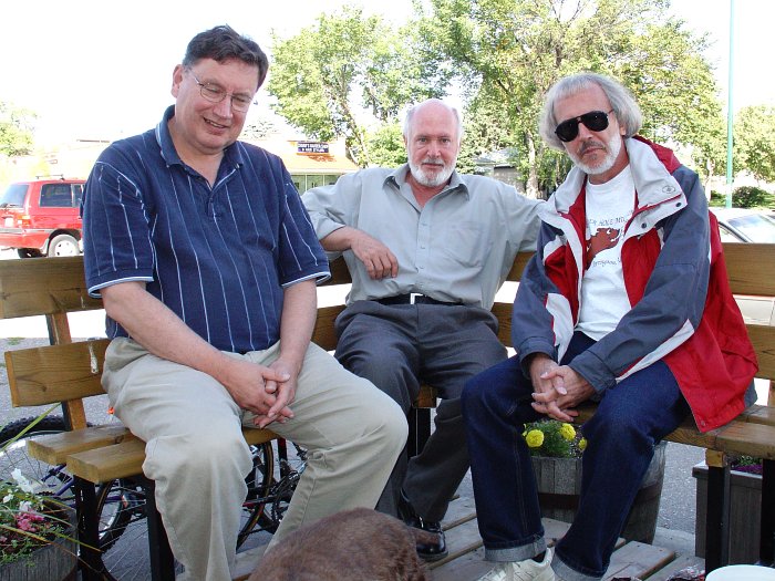 That brown hump in the foreground is Chester the dog. Chester, who is an American Cocker Spaniel, showed up with a lady while we were quaffing our bevvies and when photo time rolled around getting our picture taken with Chester seemed like a thing to do. Chester was not so big on the idea. Try as we did, he would not back up and look at the camera. The other old dogs were happy enuff to pose for a mug shot, though, so all was not lost (or maybe it was). |
