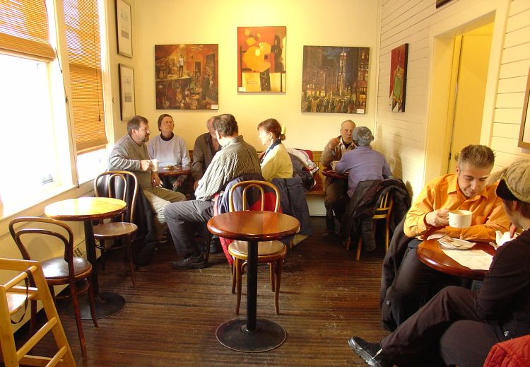 Never let an old fart take a photograph. Here's how this happened. The old fart in question set the camera on the tripod and got the shot framed up. Then the old fart pushed the shutter release button, apparently in the mistaken belief that he had also set the self timer for a 12 second delay. He had not set the self timer for a 12 second delay. He had, in fact, simply taken a photo without giving his fellow Klatschers a chance to turn around and mug for the camera. The saving grace in all this is that the old fart in question is not seen in the photo (because he was behind the camera, pusing the wrong buttons) and so, is able retain his anonymity. Whew. |