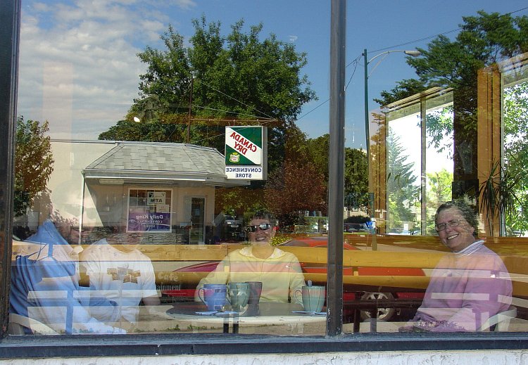 Summer solstice was warm and sunny in Calgary but Weeds hadn't put it's chairs out on the deck yet so we were stuck inside. To compensate, we sent the camera outside to snap our picture through the window.