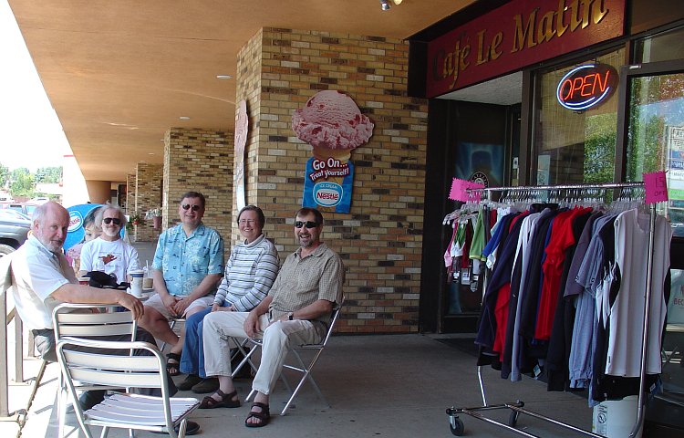 A hot day in Silver Springs. Cafe Le Matin this time because just a hop, skip & a jump from the Bugaboo Creek Pub where Stu Birkett's non-retirement get-together is scheduled. The world cup of soccer is on so there was a bit of chatter about "the beautiful game". Can't really remember anything else. |