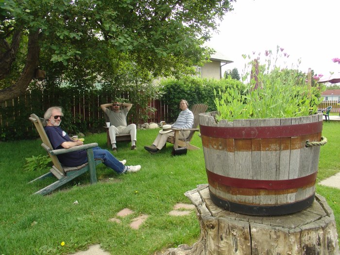 Donna von Stein was scheduled to take delivery of her new car in time for this week's Klatsch and she was wondering where we would be holding forth and if it had a proper parking lot. Lawrence suggested Blends Roasterie on Edmonton Trail because: a. it has a parking lot and, b. it has a nice yard to sit out in on a warm summer's day. No sign of Donna but the warm summer day showed up right on schedule and we enjoyed it thoroughly. |