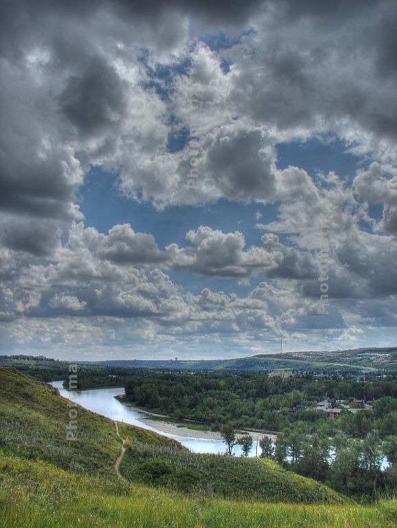 A very ugly failed attempt at an indoor high dynamic range (HDR) photo. The idea behind HDR is that by taking a series of photos -- some underexposed and some overexposed -- the best bits of all can be combined into a single shot which shows detail in the shadow, mid-range and highlight areas. It usually works much better than this. Below is an HDR shot of the river valley Hizzoner took out behind The Mayor's Mansion in Silver Springs...