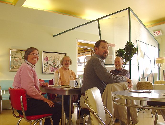A gathering of the Klatsch at Diner DeLuxe. Sorta caught Lawrence off guard this time. Everybody else seems to be enjoying the moment though.