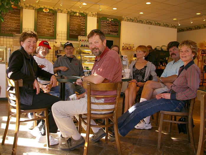 An out-of-town Klatsch at the Cinnamon Spoon in Bragg Creek. Great fall colors on the drive out. Nice to have a chin-wag with the three folks on the right: Sharon, Truman and Sandra. Sharon and Truman invited the gang out to their digs at the Alberta Filmworx location for a bevvy and a tour of the site. Thanks very much to them for the hospitality and an interesting look-see behind the scenes in a real movie town. More pics of this part of the afternoon are on the way. Check back in a few daze. |