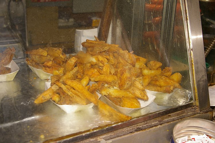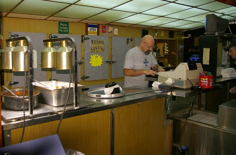 Another shot looking the other way. The bill of fare on October 25th, 2006 included beef ribs, some kind of big weenie on a bun and, of course...