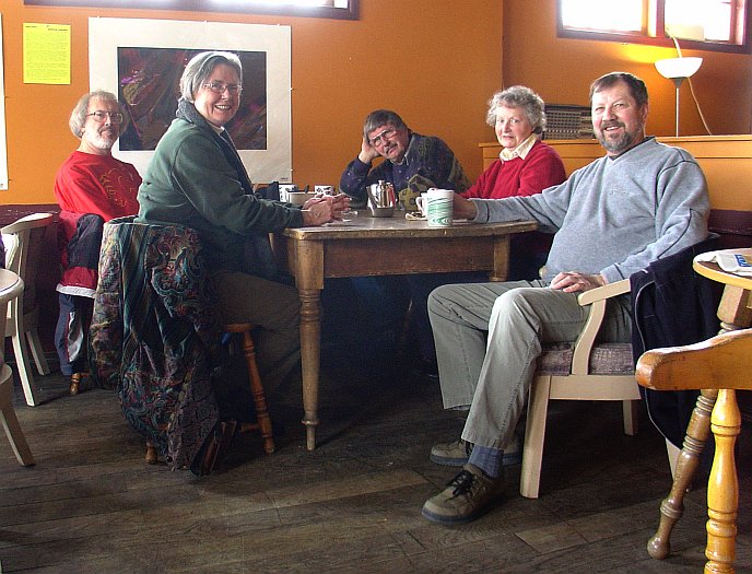 Another week, another coupla visitors from out of town. This time it's Lawrence's brother, Gene, and his wife Michele from Edmonton. One of Gene's hats has "film-maker" printed on it and he is on the lookout for a company which can make a good-quality DVD transfer of a 16mm film he made some years ago on Alberta's northern Indians. So, if any of you Klatsch album visitors can help out, send along an e-mail. The KlatschMeister's trusty Sony V1 digital camera is still churning out the pics after four years of faithful service and the KM loves it as much as ever, so he up and got another one on ebay to act as a back-up. This Klatsch pic was taken with V1 #2. All of the photographic shortcomings are the fault of the photographer, not the camera, which works great! |