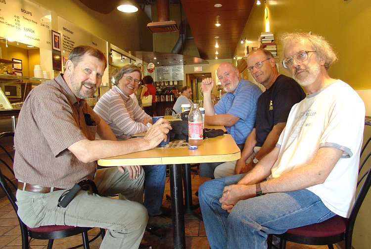 When the KlatschMeister sent out the Klatsch notice on Sunday nite, he decided to include a map so that folks would be able to find the quaint java joint known as Cafe Le Matin in the heart of beautiful Silver Springs. Lawrence piped up and said he thought including a map was a good idea and suggested that hordes might descend on Cafe Le Matin. It did, in fact, draw a mini-horde in the form of Mr. Digby, who is still labouring at the Tech but who is on holidays this week. Nice to see you, D. The Klatsch took place about three hours ago so I have, of course, forgotten almost everything that happened. One thing does stick in my mind, though; Bob told us about the time he was escorted out of the Drumheller Penetentiary. Somebody had left the gate open, so he went in to inquire if they offered guided tours to the public. The armed guard in attendance assured him that they did not. |