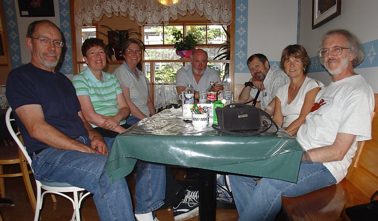 A fairly respectable turnout at Edelweiss Village this time and a new recruit: Jean Amatt, newly retired from the Tech Library. Welcome to the Klatsch, Jean; hope you had an enjoyable time today and that you will continue to join us at our Wednesday meetings. |