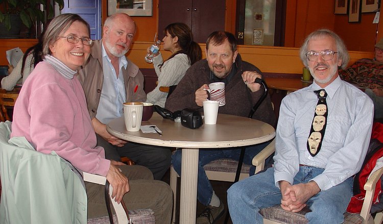 Halloween Day at Weeds. Can't remember if Halloween has ever fallen on a Klatsch day before. This time, just to make it an extra special occasion, the KlatschMeister got himself all dolled up in the spiffy light-up Halloween necktie that he got from Emily Borelli back in the day. Thnax, Emily. It still works great! |
