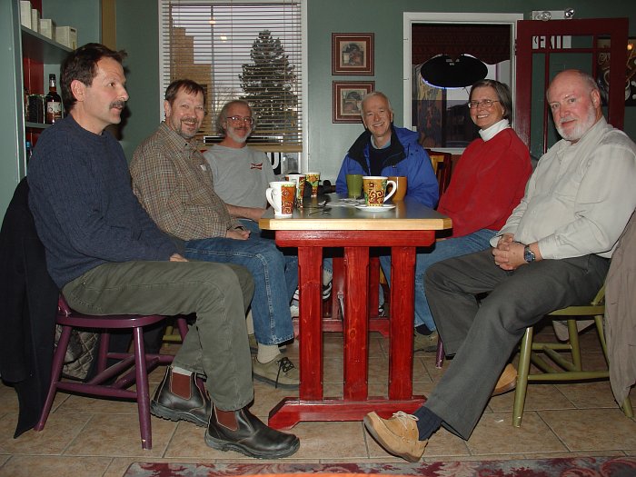 Chilly outside but cozy inside Blends Roasterie on Edmonton Trail. A couple of infrequent visitors, George and Terry, helped fill up the table and keep the conversation rolling. Everybody seemed in fine fettle. (Fettle: Loose sand or ore used to line the hearth of a reverberatory furnace in preparation for pouring molten metal.) |