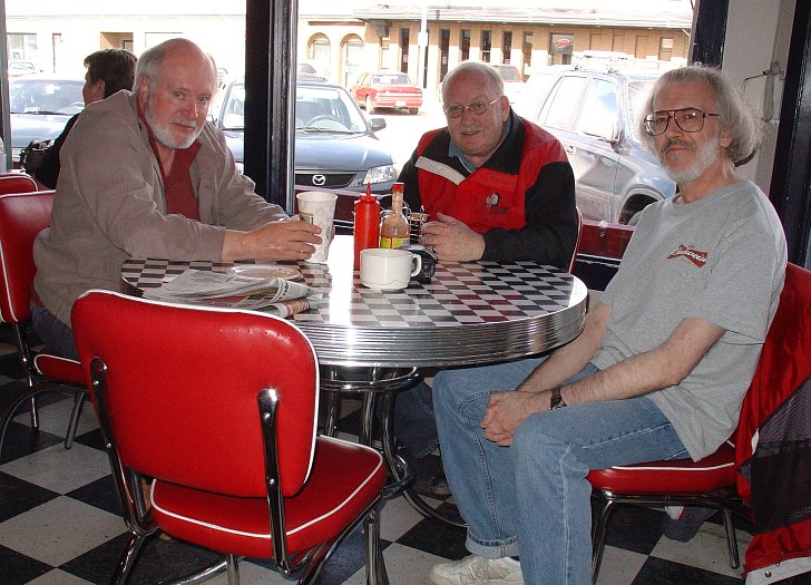 A couple of familiar faces are missing this week. Lawrence and Mary are in Edmonton to attend a service for Mary's brother, Bruce, who passed away over the weekend. The KlatschMeister had the pleasure of spending a couple of evenings with Bruce and his wife Jan at the Gregorets. Bruce was a great guy. Klatsch condolences go out to Mary. Hope to see you soon, kiddo. That unfamiliar face in the middle belongs to Tech veteran Doug Hare. Lawrence ran into him a coupla daze after the last Klatsch and passed along his address. Nice to see another SAIT retiree. Come back and see us again now, ya hear? |