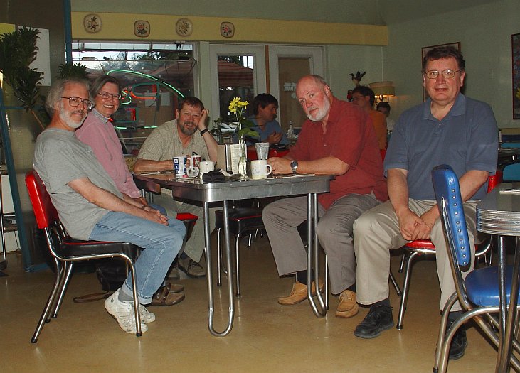 Here we are at Diner DeLuxe. Seems like everybody was either just back from somewhere or going somewhere or talking about going somewhere. Must be "the holiday season". On the other hand, there were no Christmas decoration in evidence, so I guess not. |
