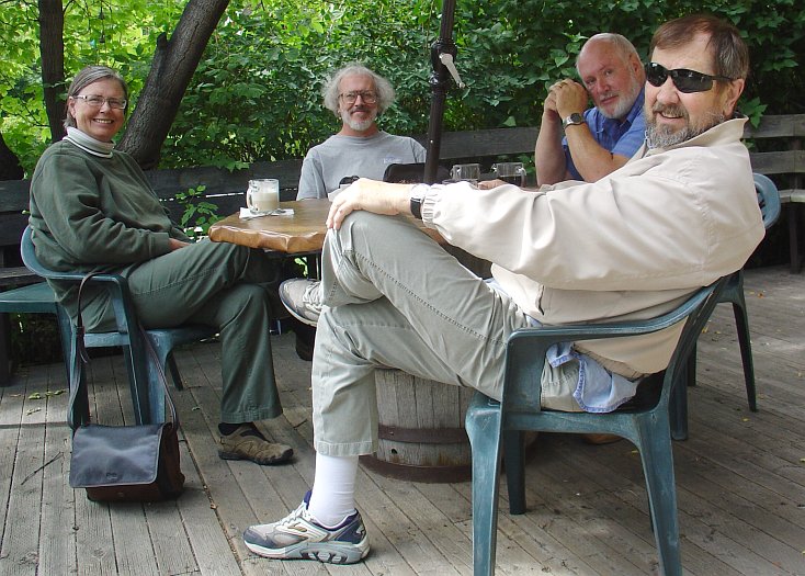 Seemed like it was gonna be too windy and chilly to sit outside at the Kaffa Coffee and Salsa House today but it turned out to be just fine. Goes to show that living on the edge can have its benefits. Bob has set up a new Web site in support of his new book (see last week's Klatsch pic). As of this writing it is still a work in progress but you can find it