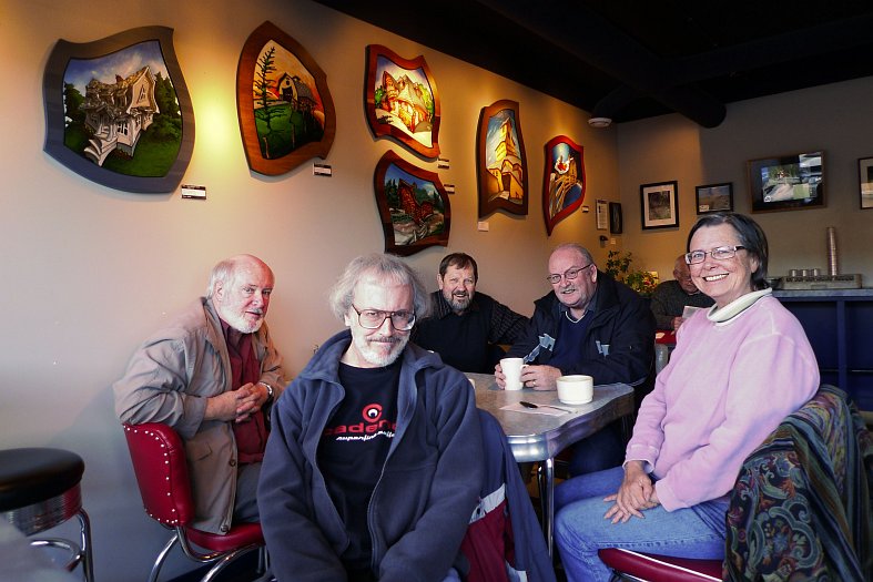 Here we are back in beautiful downtown Bowness at our favourite haunt in those environs, Cadence Coffee. Uppermost in the minds of all Canadians this week (or, at least some Canadians) the governmental situation -- dubbed a crisis by the crisis-happy media -- in which the Liberals, the NDP and Bloc Quebecois are scheming to form a coalition and oust the tories from government. No concensus at this table but, as some deep thinker on TV said, giving the separatists a veto in parliament seems like kind of a dumb idea. We'll see in January when parliament reconvenes. Who knew there even was such a word as prorogue? Not me. |