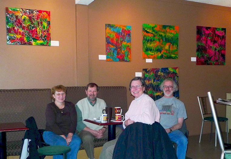 A small but distinguished gathering at Central Blends. Immediately upon arriving The KlatschMeister got himself stuck in the snow on a sidestreet and was pushed out by a kindly contractor who came over to lend his assistance. Once inside, the conversation included reminiscences about school vitamin pills that we bought from the school nurse when we were kids, how to get dogs to take pills, doing the Jenny Craig thing without buying Jenny's overpriced food products, the movie The Man Who Sued God and what to do with heirloom dishes you don't want. Whew! |